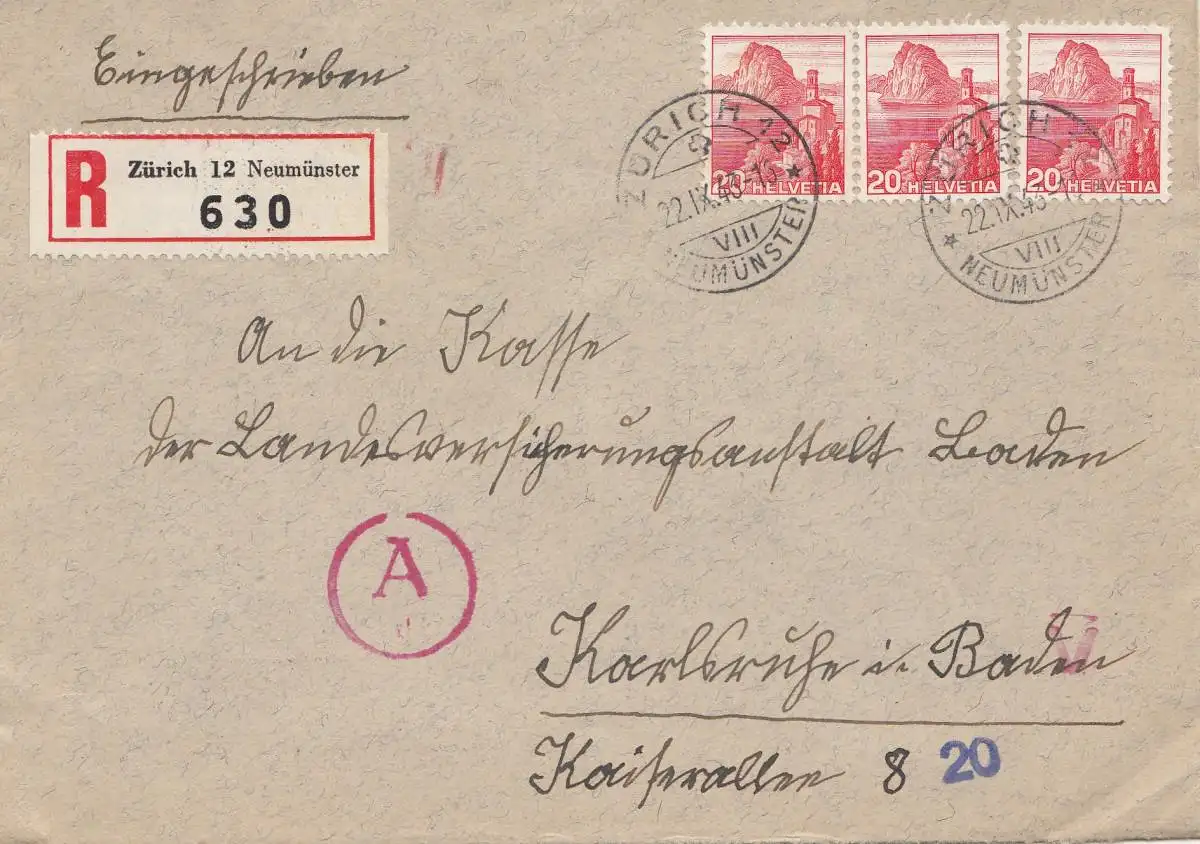 Schweiz: 1943: Zürich als Einschreiben nach Karlsruhe, OKW Zensur