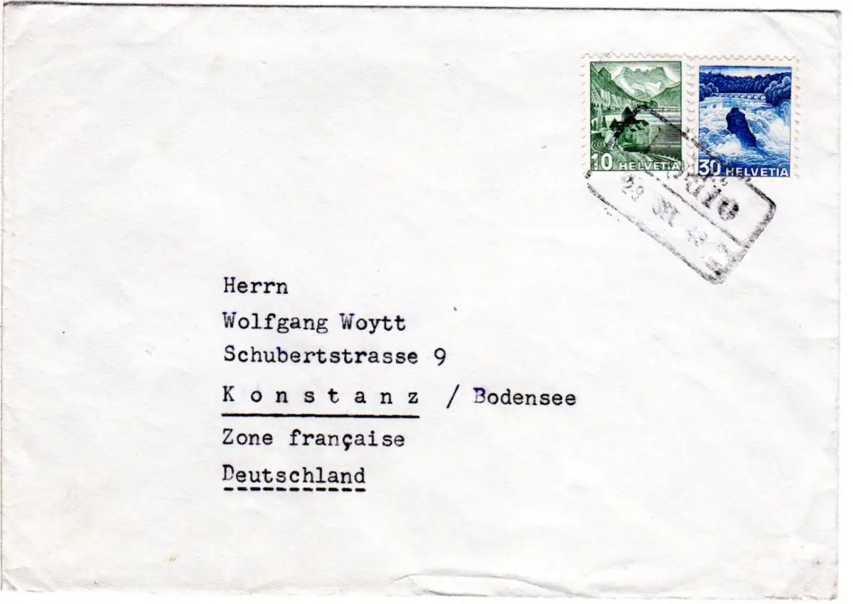Schweiz 1948, Bodio (Ticino), bahnamtl. R2 auf Brief m. 10+30 C.