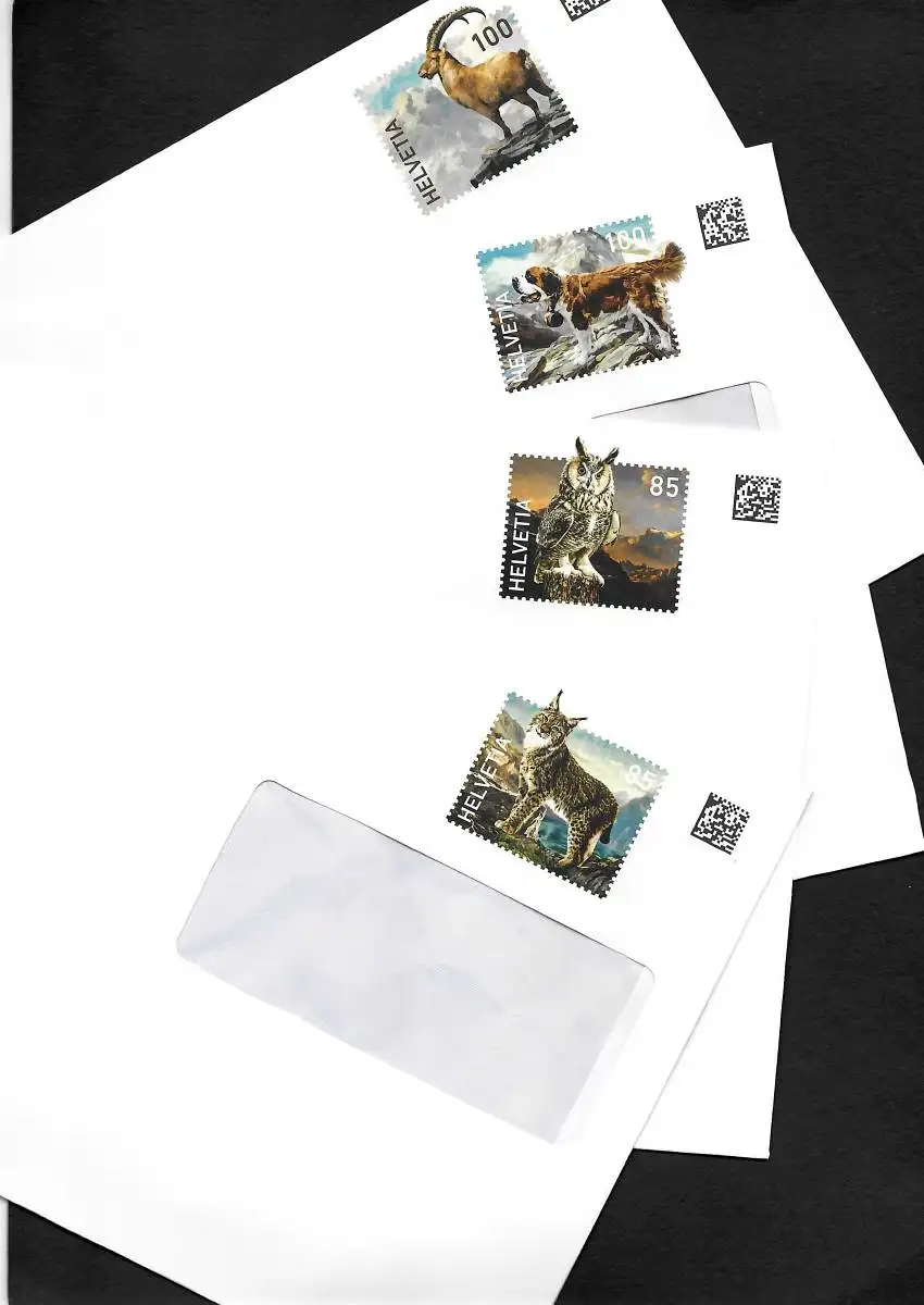 Schweiz 2018: 4x Ganzsachen: Tiere der Berge, Luchs, Eule, Bernhardiner, **