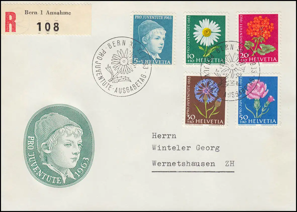 Schweiz 786y-790y Pro Juventute 1963, Satz fluoreszierend auf Schmuck-R-FDC ESSt