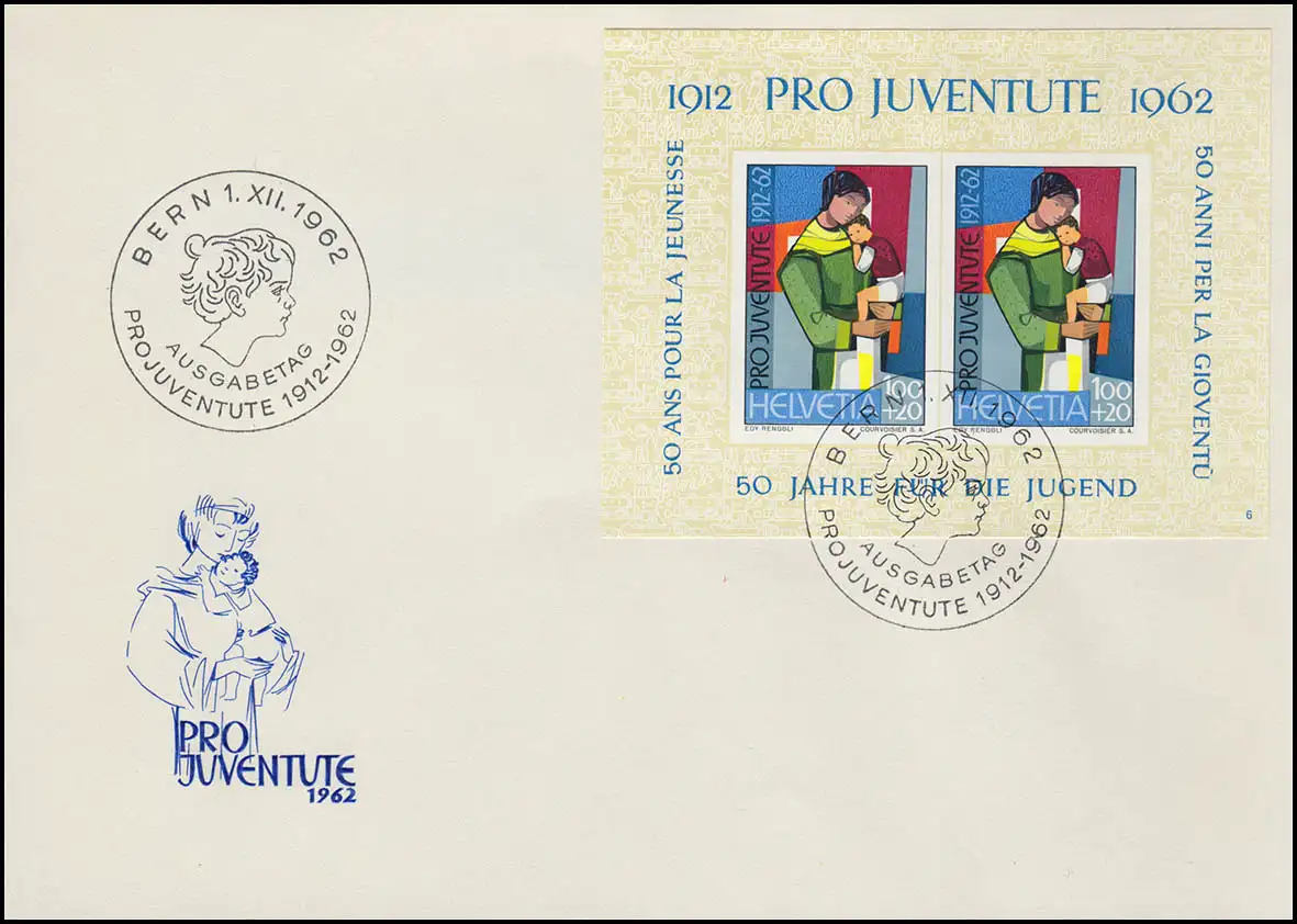 Schweiz Block 18 Pro Juventute 1962, Block mit Nr. 6 auf Schmuck-FDC ESSt Bern