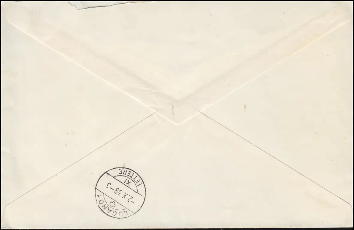 Block auf Einschreiben vom Letzttag der Nationalen Briefmarken-Ausstellung, befördert nach LUGANO 2.10.38