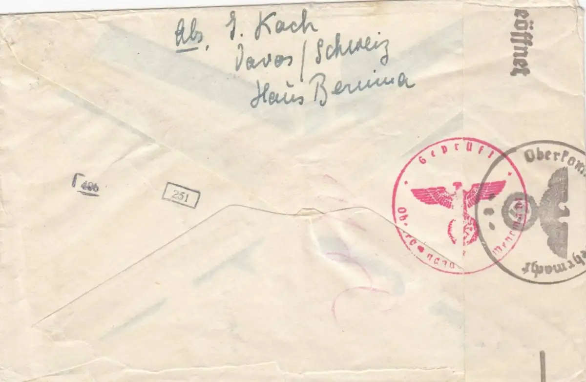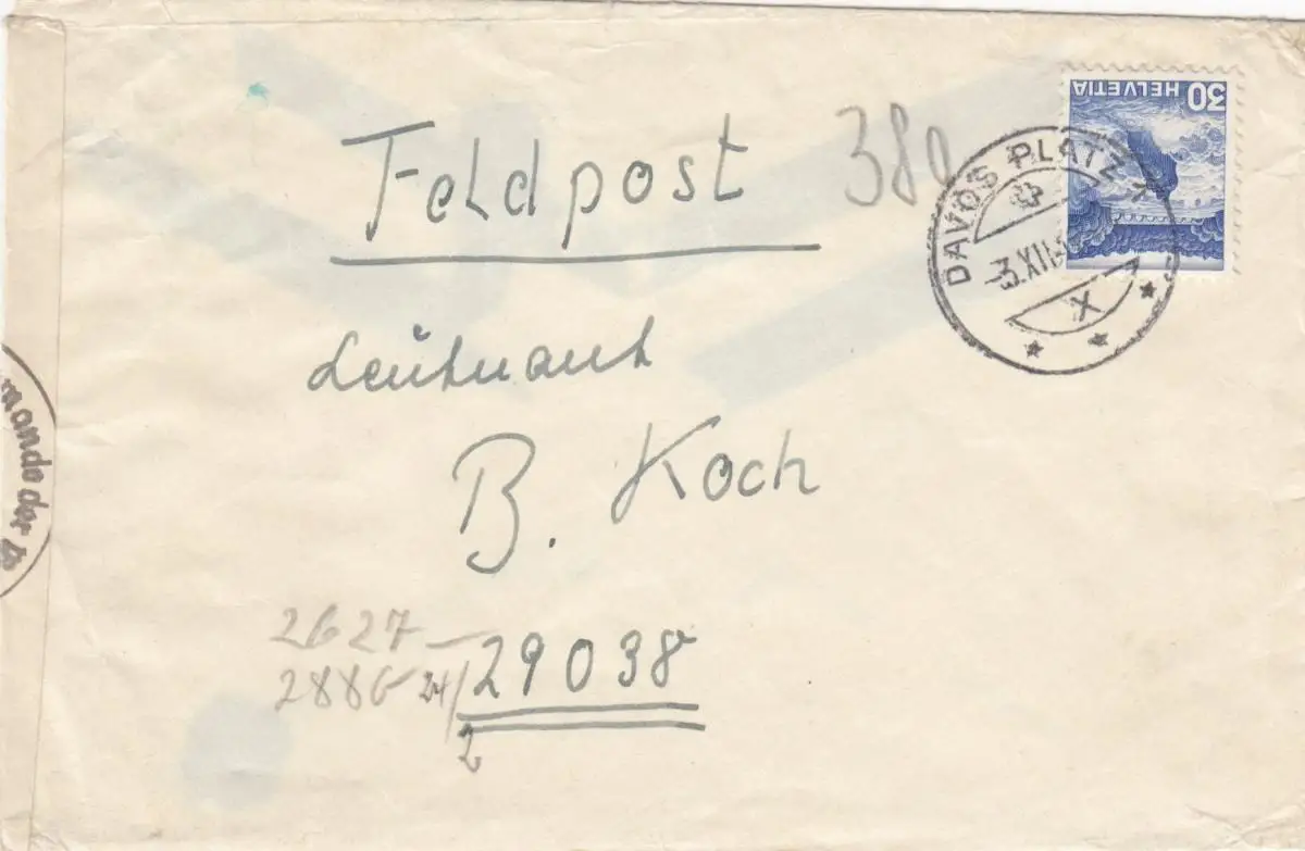 Schweiz: Brief aus Davos 1942 ans Feldpostadresse 29038 mit OKW Zensur