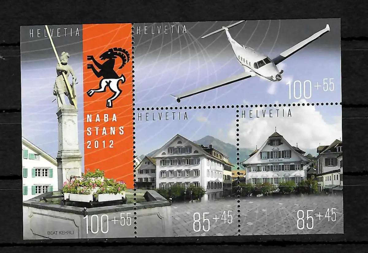 Schweiz: Briefmarkenausstellung NABA STANS 2012, #2257-60, Block #49 postfrisch