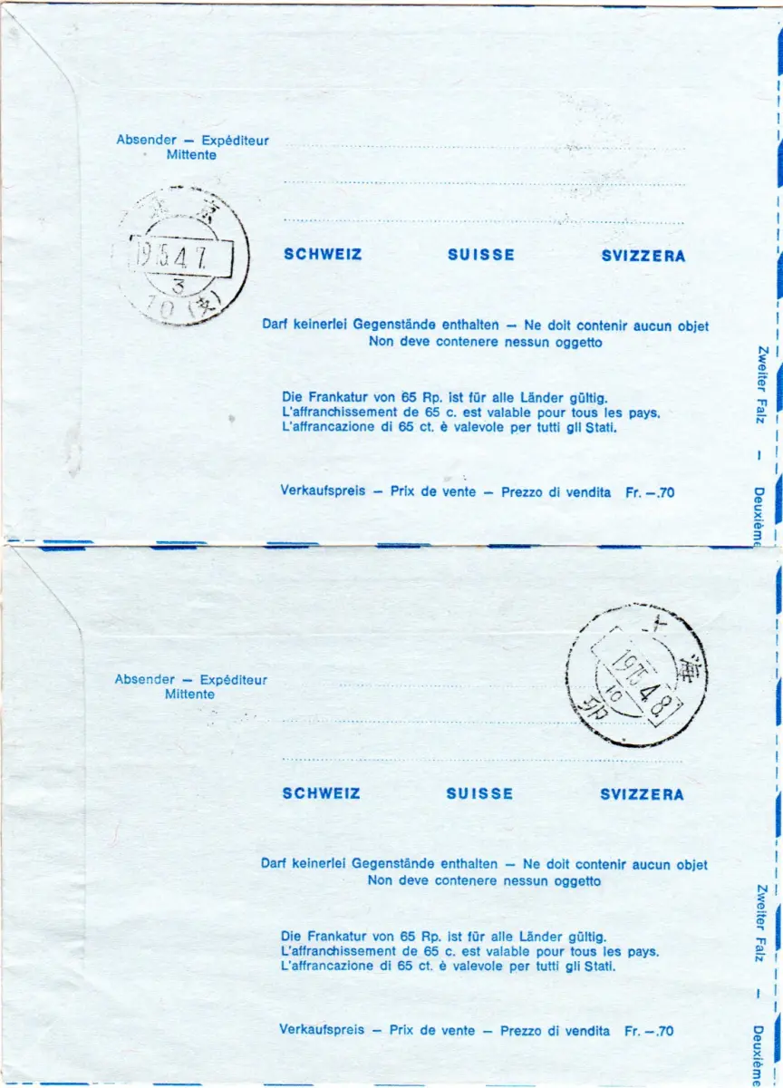 2 Aerogramme m. Zusatzfrankatur u. jeweols rücks. Ank.Stpl.