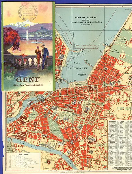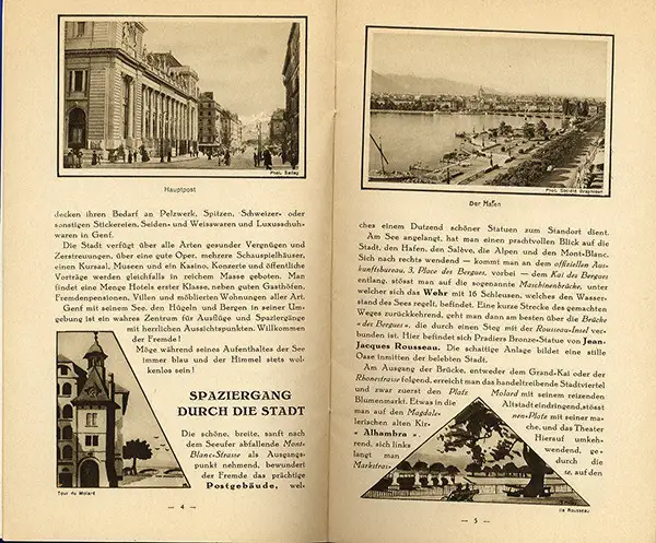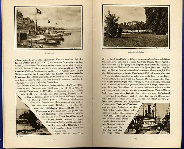 Genf der Sitz des Völkerbundes und seine Umgebung Kleinbuch mit Branchen und Geschäftsteil für den Reise und Fremdenverkehr um 1926