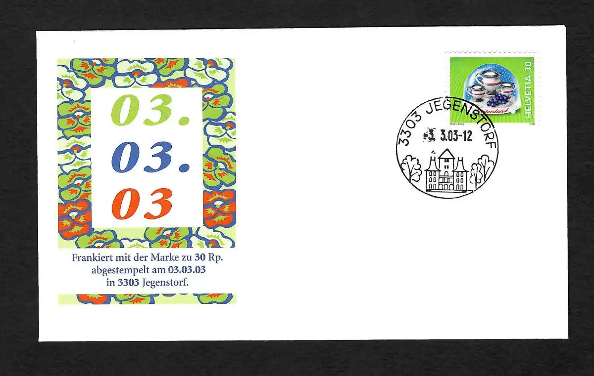 Schweiz Jegenstorf 2003: 3.3.03 - Schnapszahl Beleg, gestempelt