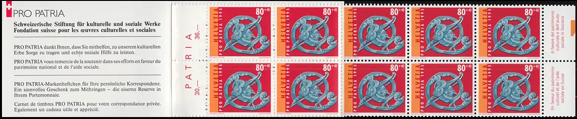 Schweiz Markenheftchen 0-100, Pro Patria Volkskunst Truhenschloss 1995, **