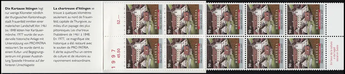 Schweiz Markenheftchen 0-108, Pro Patria Kartause Ittingen 1997, **