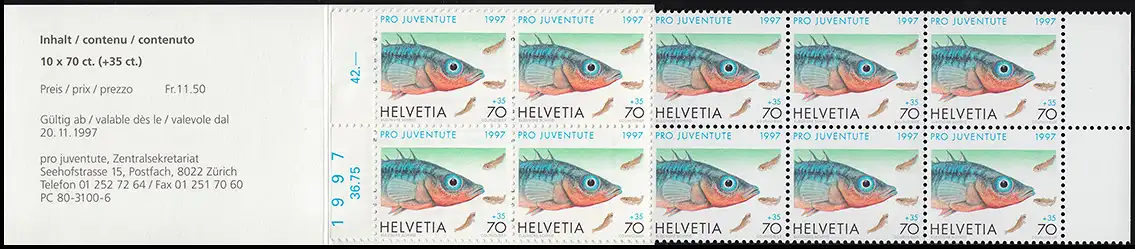 Schweiz Markenheftchen 0-109, Pro Juventute Stichling 1997, **