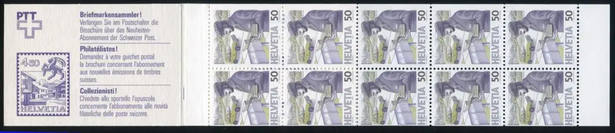Schweiz Markenheftchen 0-84 Postbeförderung: Verschnitt des Heftchenblattes **