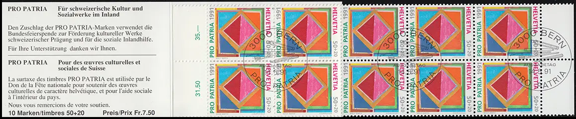Schweiz Markenheftchen 0-90, Pro Patria Zeitgenössische Kunst 1991, ESSt