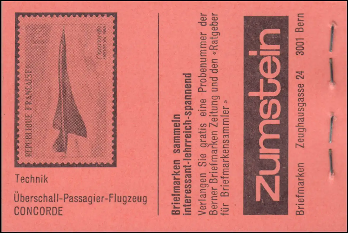 Deckel: rotorange, Deckelseiten: Lamerasoir / Wertzeichenverkaufsstelle / Zumstein: Frankreich "Concorde" - deutsch