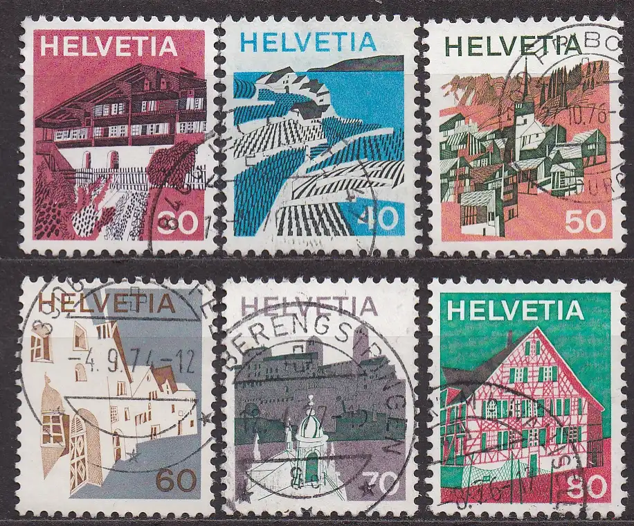 Schweiz, Mi-Nr. 1007, 1008, 1009, 1010, 1011 + 1012 gest., Landschaften