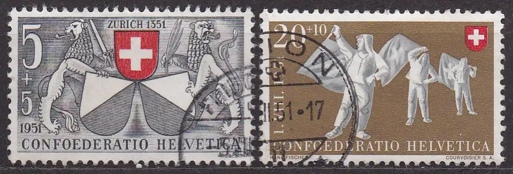 Schweiz, Mi-Nr. 555 + 557 gest., Pro Patria 1951