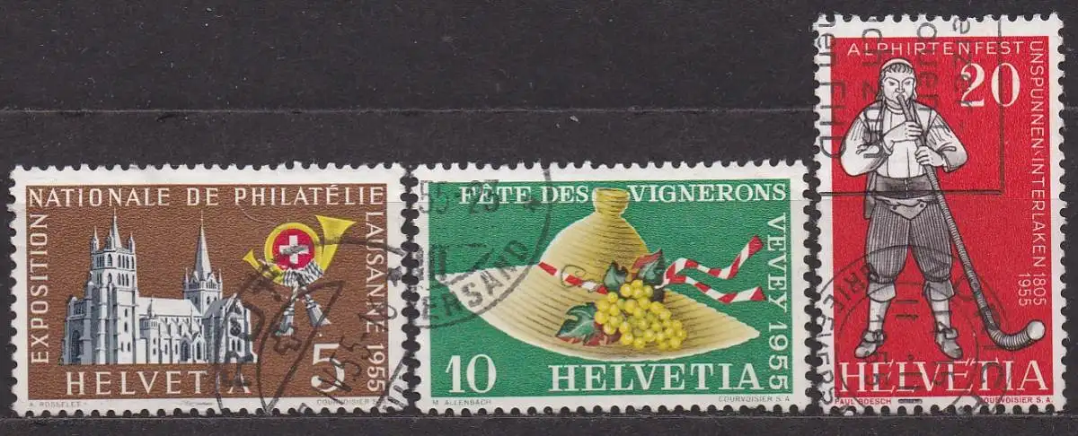 Schweiz, Mi-Nr. 607, 608 + 609 gest., Jahresereignisse 1955