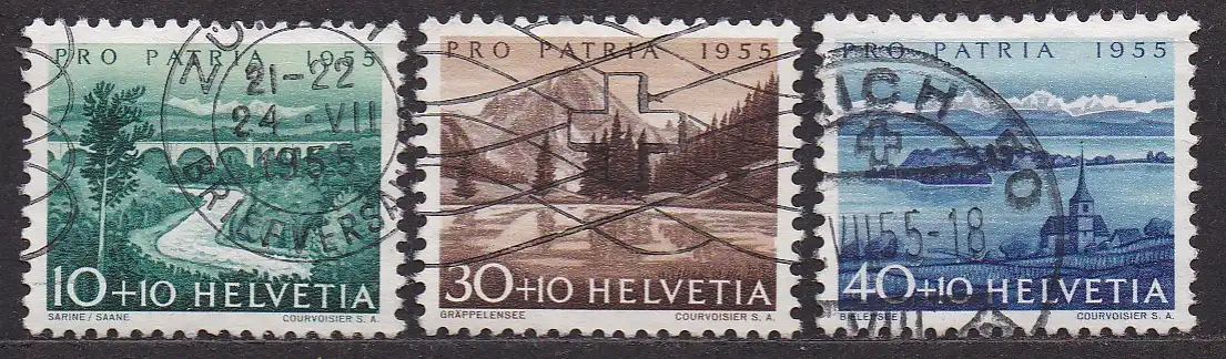 Schweiz, Mi-Nr. 614, 616 + 617 gest., Pro Patria 1955: Seen und Wasserläufe
