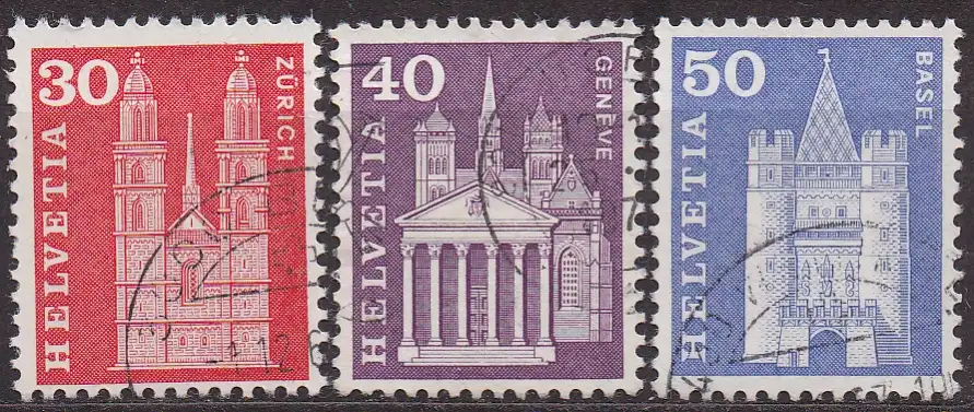 Schweiz, Mi-Nr. 701 y, 703 y + 704 y gest., Baudenkmäler