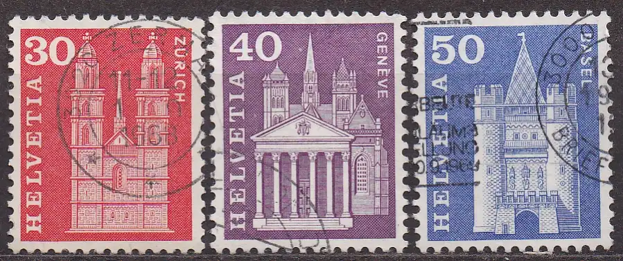 Schweiz, Mi-Nr. 701 y, 703 y + 704 y gest., Baudenkmäler