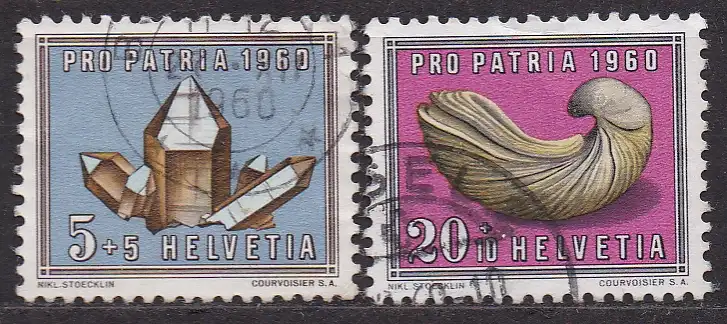 Schweiz, Mi-Nr. 714 + 716 gest., Pro Patria 1960: Mineralien und Versteinerungen
