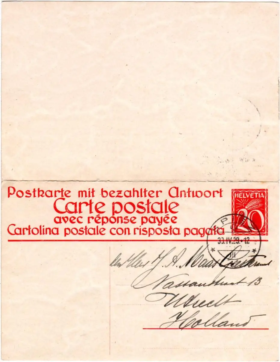 Schweiz P 109, 20+20 C. Doppel Ganzsache, sauber gebr. v. Spiez n. NL