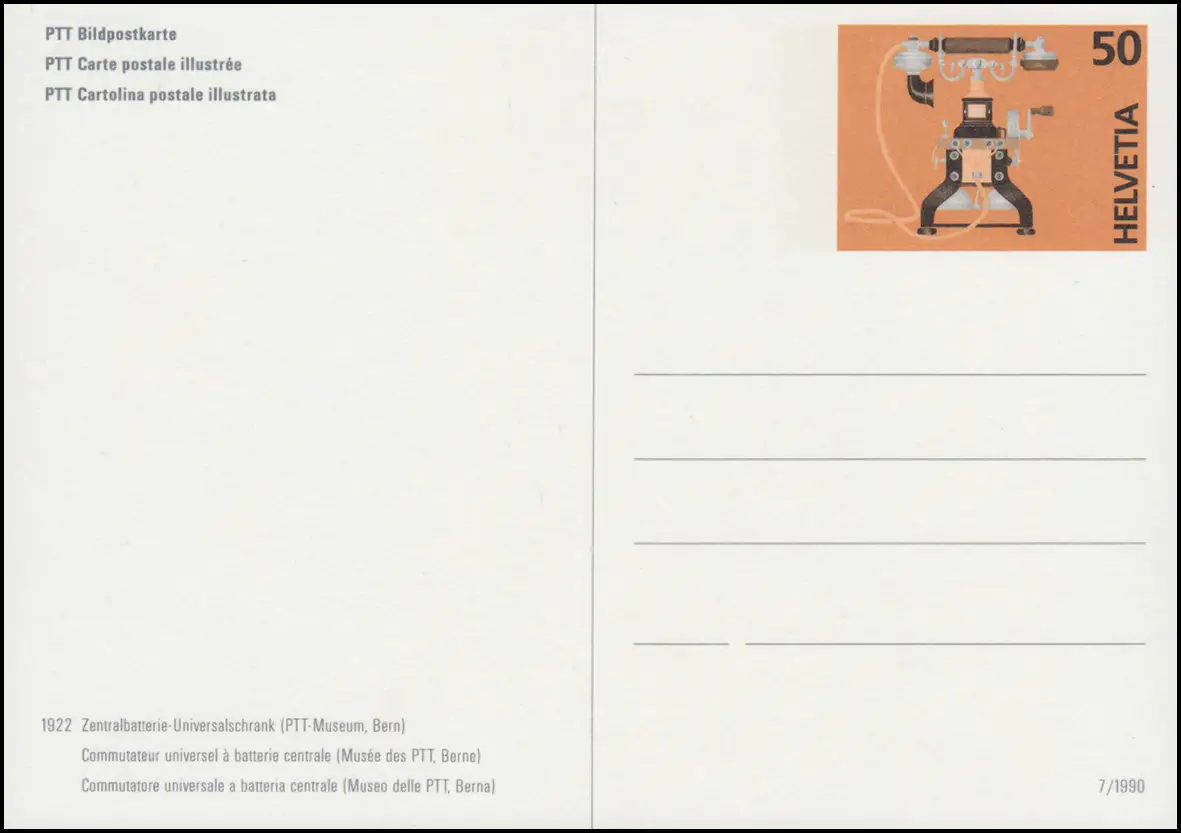 PTT Bildpostkarte mit Druckvermerk: 7/1990