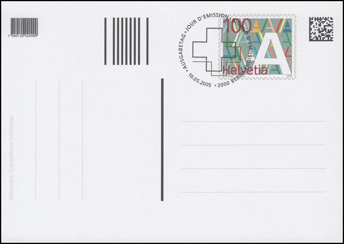 Schweiz Postkarte P 309 Dauerausgabe A-Post 2005, ESSt Bern 10.5.2005