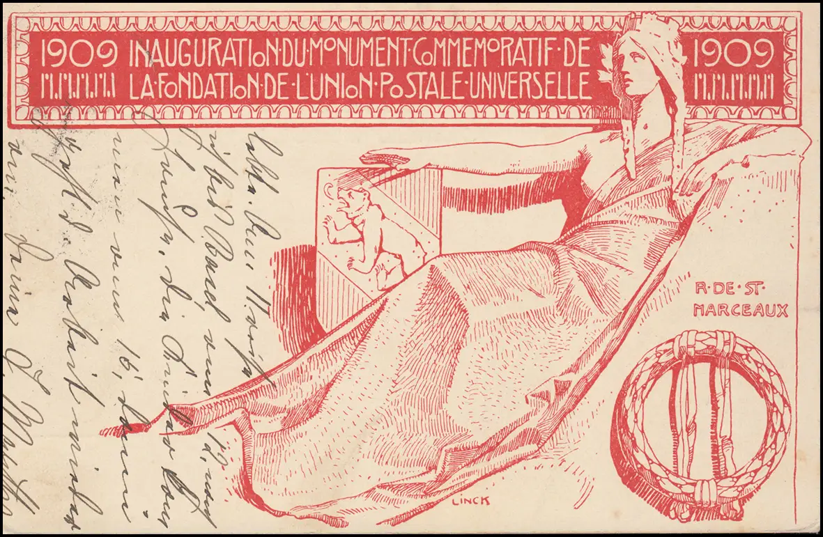 Feier zur Einweihung des Weltpostdenkmals in Bern am 4. Oktober 1909, befördert nach Freiberg / Sachsen