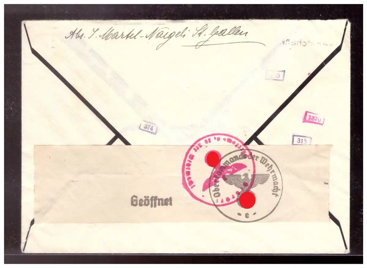 Schweiz (022514) Brief mit OKW Zensur gelaufen St.Gallen nach Prag
