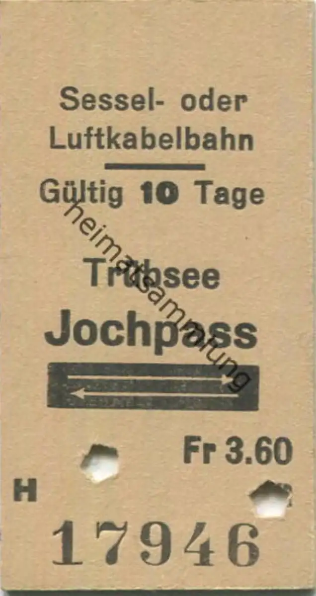 Schweiz - Sessel- oder Luftkabelbahn - Trübsee Jochpass und zurück - Fahrkarte