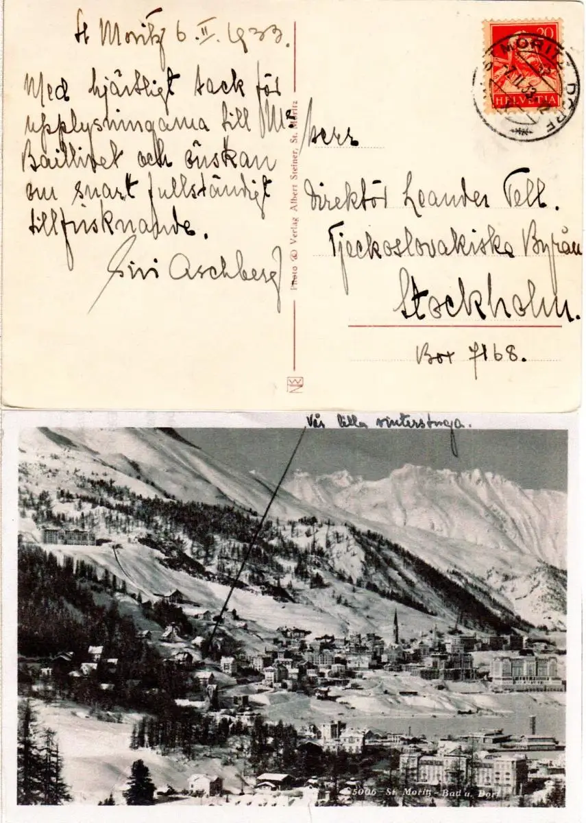 Schweiz, St. Moritz-Bad u. Dorf, 1933 m. 20 C. n. Schweden gebr. sw-AK