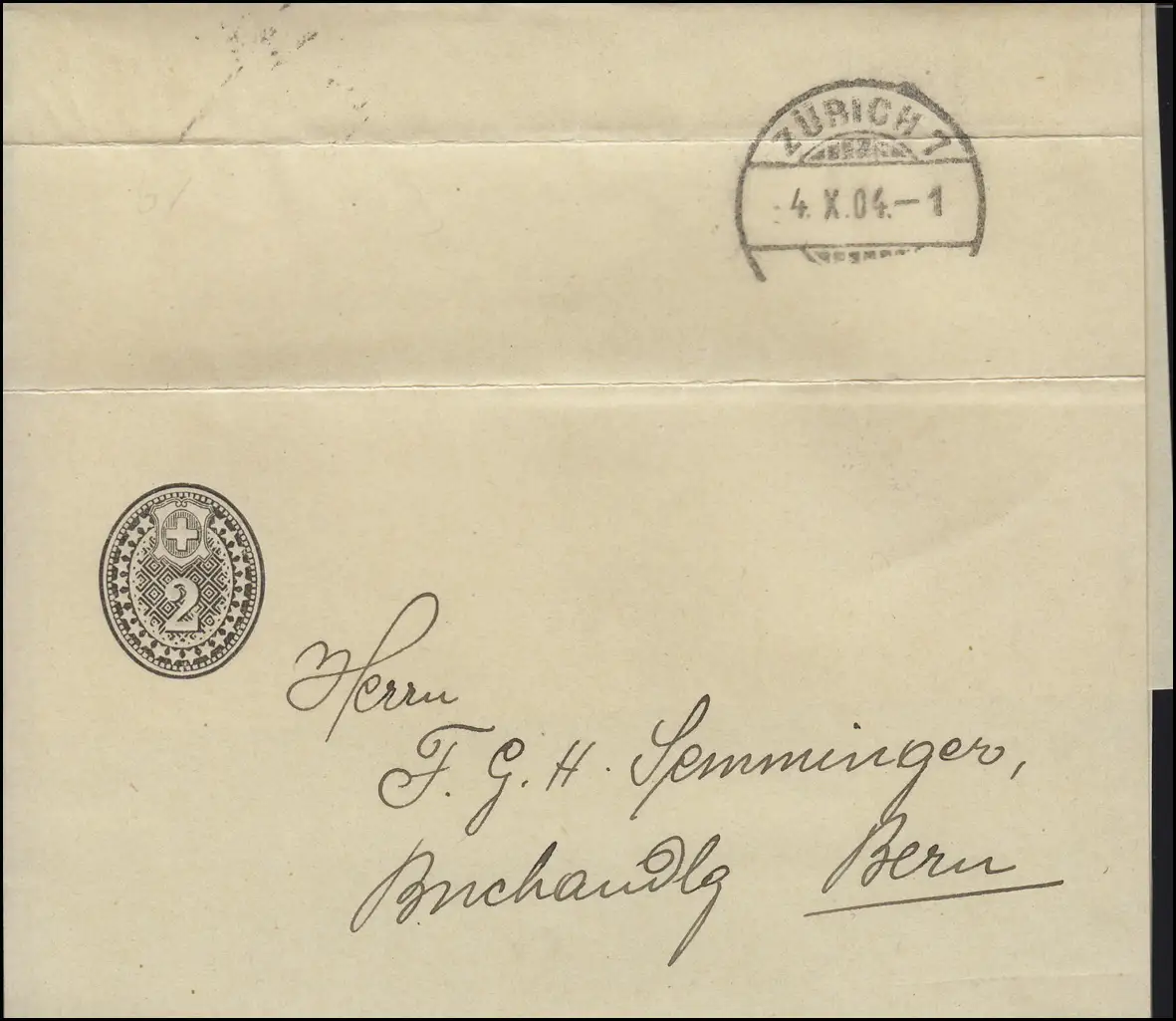 Schweiz Streifband S 16 Ziffer im Oval 2 C.schwarz ZÜRICH 4.10.04 nach Bern
