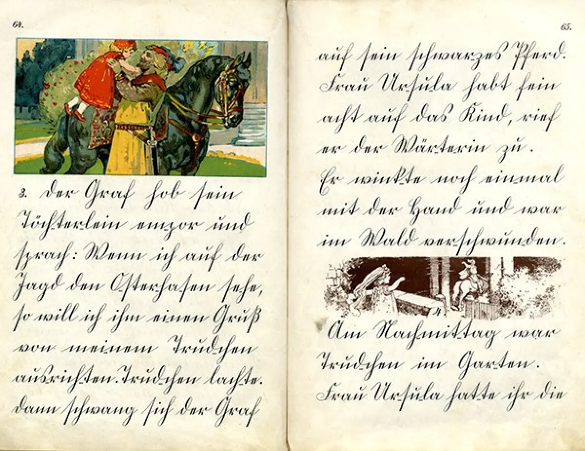 mit GESAMT 80 Seiten kunstgrafischen Abbildungen mit Grundlagen und Anfänge von einfachen Buchstaben und Wortübungen Silben und Lautlehre einfachen Sätzen bis hin zu mehrseitigen Lesestücken. Das Buch war in jeden Fall in Gebrauch alle Texte in schöner Schreibschrift Süterlin