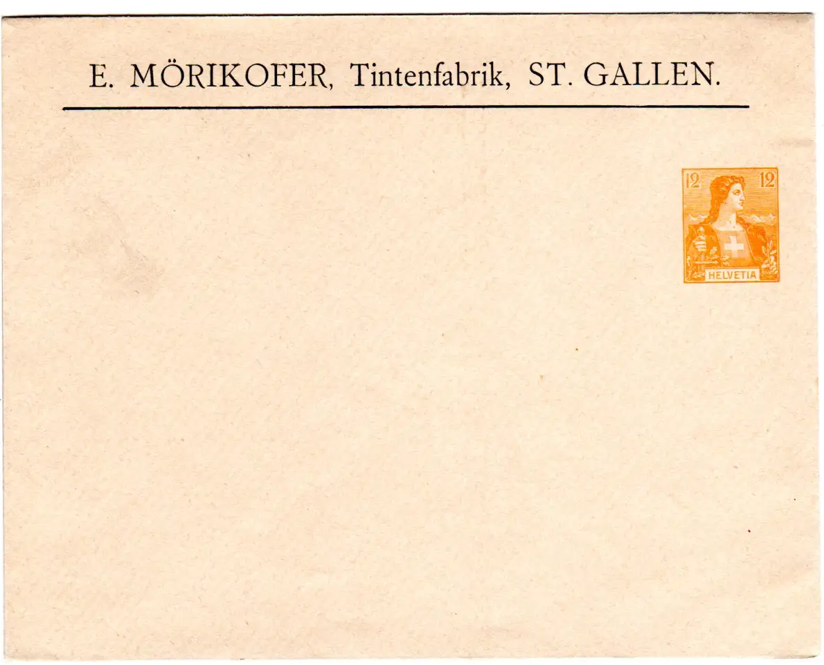 Schweiz, ungebr. 12 C. Privat Ganzsache Brief Tintenfabrik Mörikofer, St. Gallen