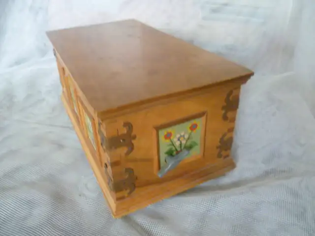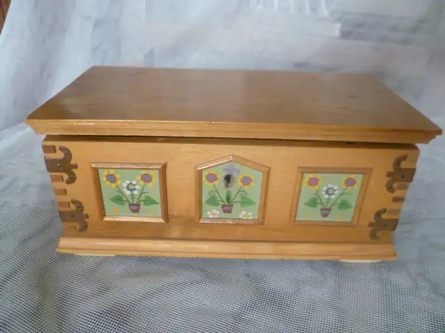 Schweizer Spieluhr Model Lador Melodie: "La Tosca" in Form einer handbemalten Truhe 1960 gefertigt!