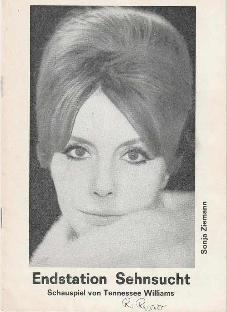 A Streecar Named Desire. Schauspiel in drei Akten von Tennessee Williams. Inszenierung: Charles Regnier. Bühnenbild: Pit Fischer. Kostüme: Mariann Eugster. Musik: Hermann Thieme. Mitwirkende: Sonja Ziemann, Götz George, Brigitte Rau, Gunnar Möller, Gisela Tantau, u.a. - Schlüsselwörter: Theaterprogramm, Opernprogramm, Ballettprogramm, Musicalprogramm, Konzertprogramm, Theatermemorabilia, Programmhefte Sammlung, deutsche Theatergeschichte.