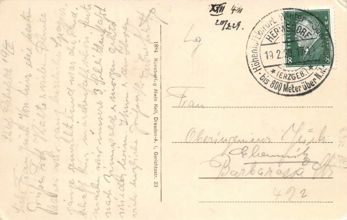Rückseite: gelaufen 1929 von Hermsdorf (Erzgeb.)