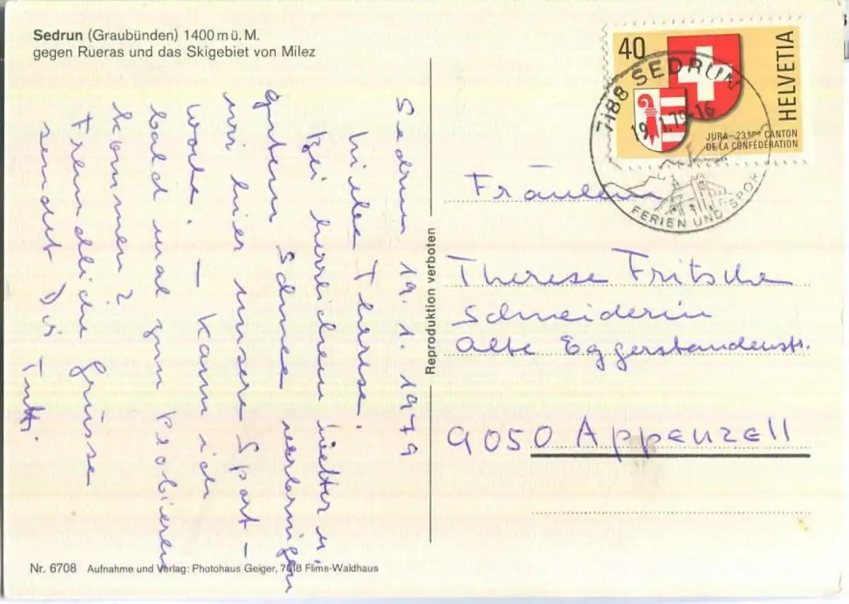 Sedrun - Furka–Oberalp-Bahn - Verlag Geiger Flims-Waldhaus (E91293) gel. 1979