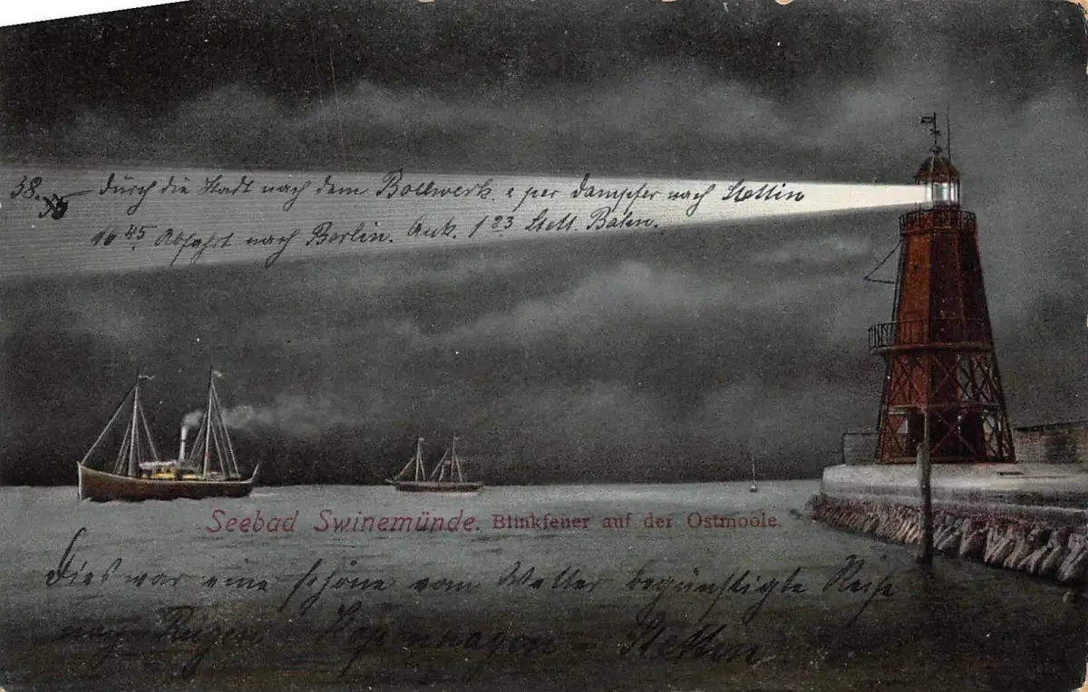 Seebad Swinemünde Blinkfeuer auf der Ostmoole Postkarte AK