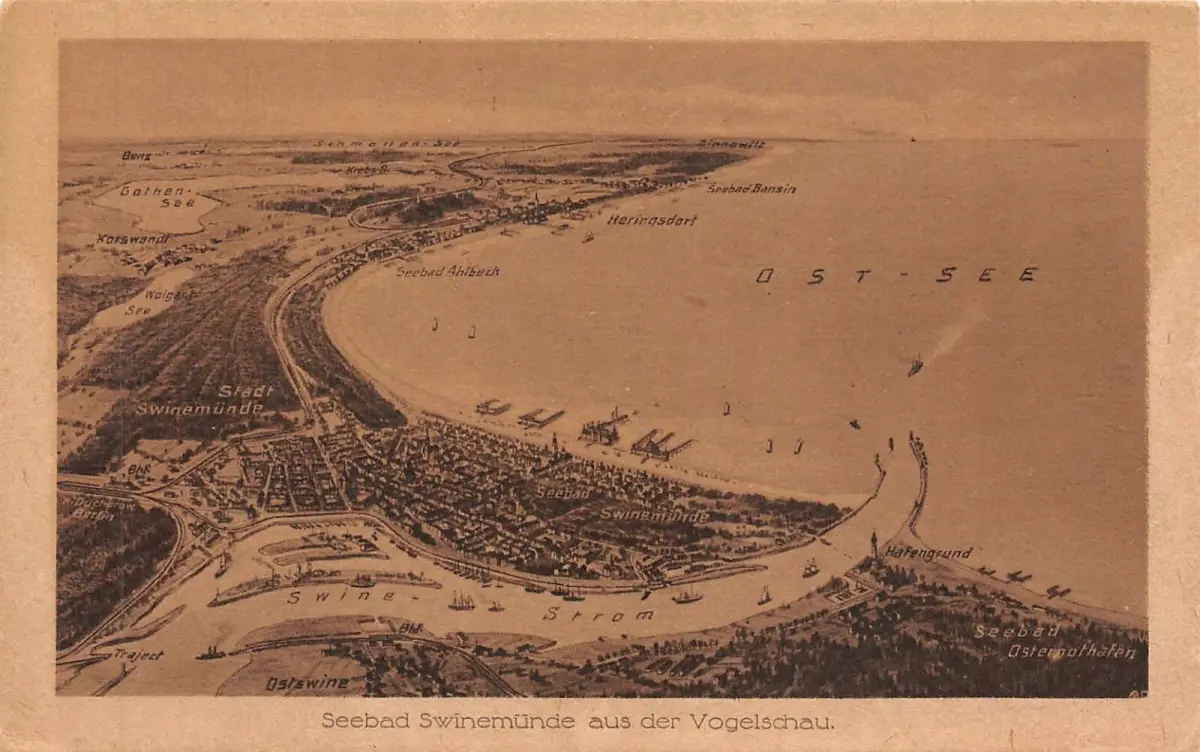 Seebad Swinemünde aus der Vogelschau Seebad Ahlbeck Postkarte AK
