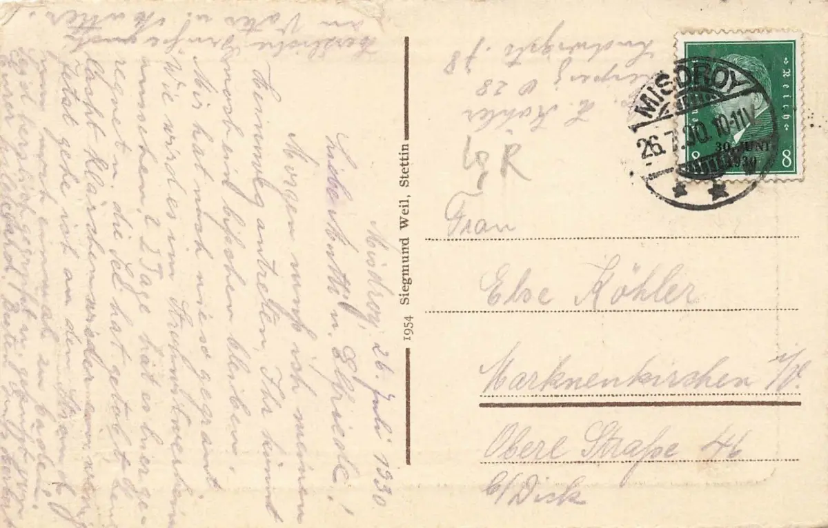Rückseite: gelaufen 1930