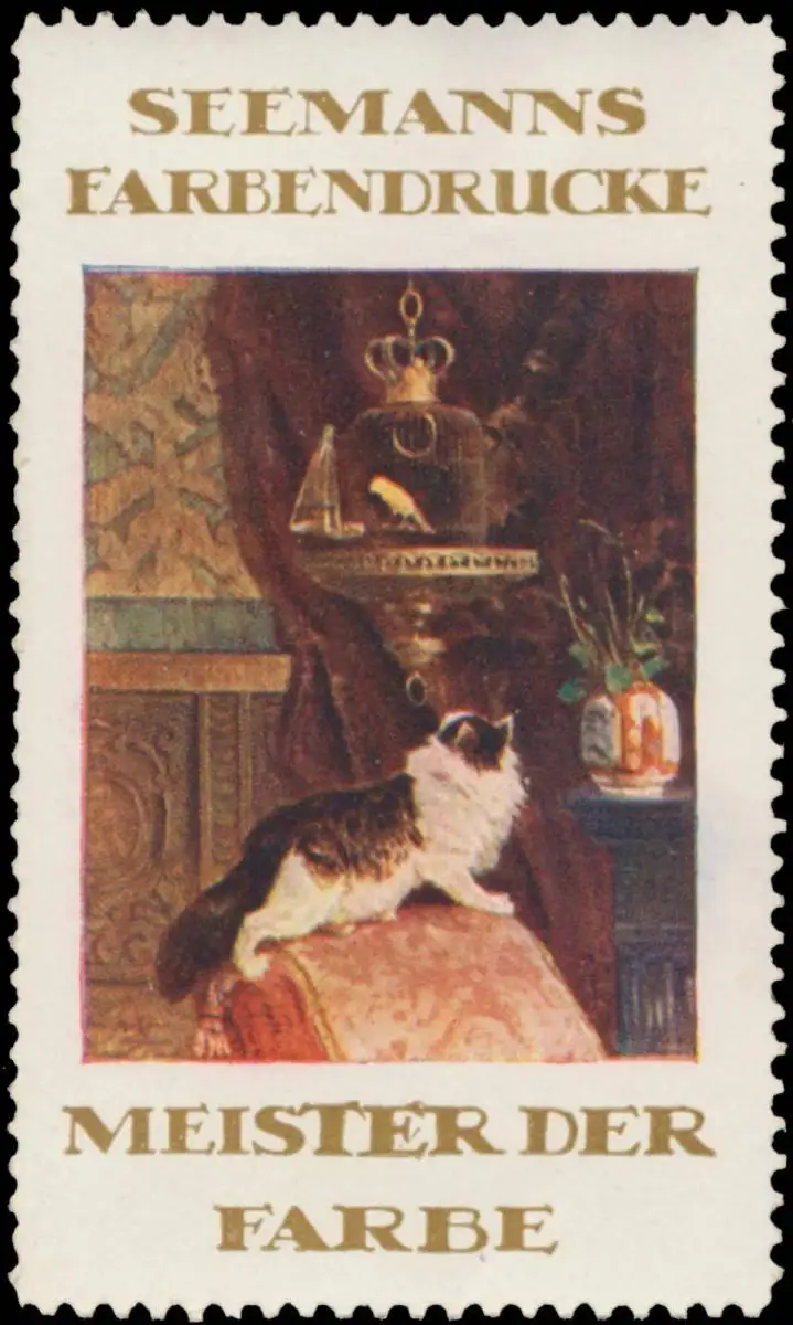 Meister der Farbe, Katze, Größe/Zustand: 6x4 , guter Zustand, Original alte Reklamemarke die seinerzeit für die Werbung benutzt wurde