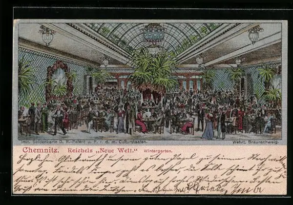Seiden-Imitations-AK Chemnitz, Gasthaus Reichels Neu Welt, Wintergarten