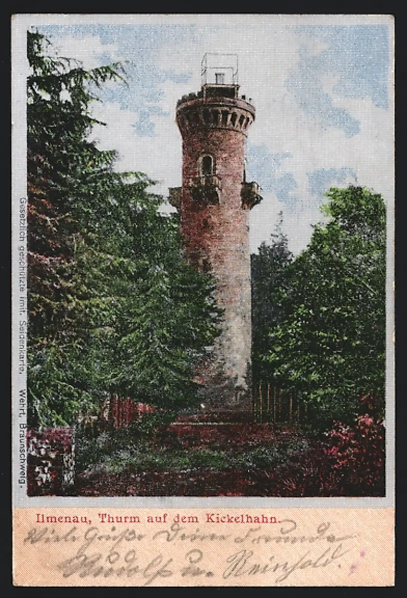 Seiden-Imitations-AK Ilmenau, Turm auf dem Kickelhahn