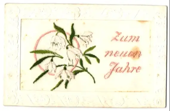 Seidenstick-AK Neujahrsgruss mit Märzenbechern
