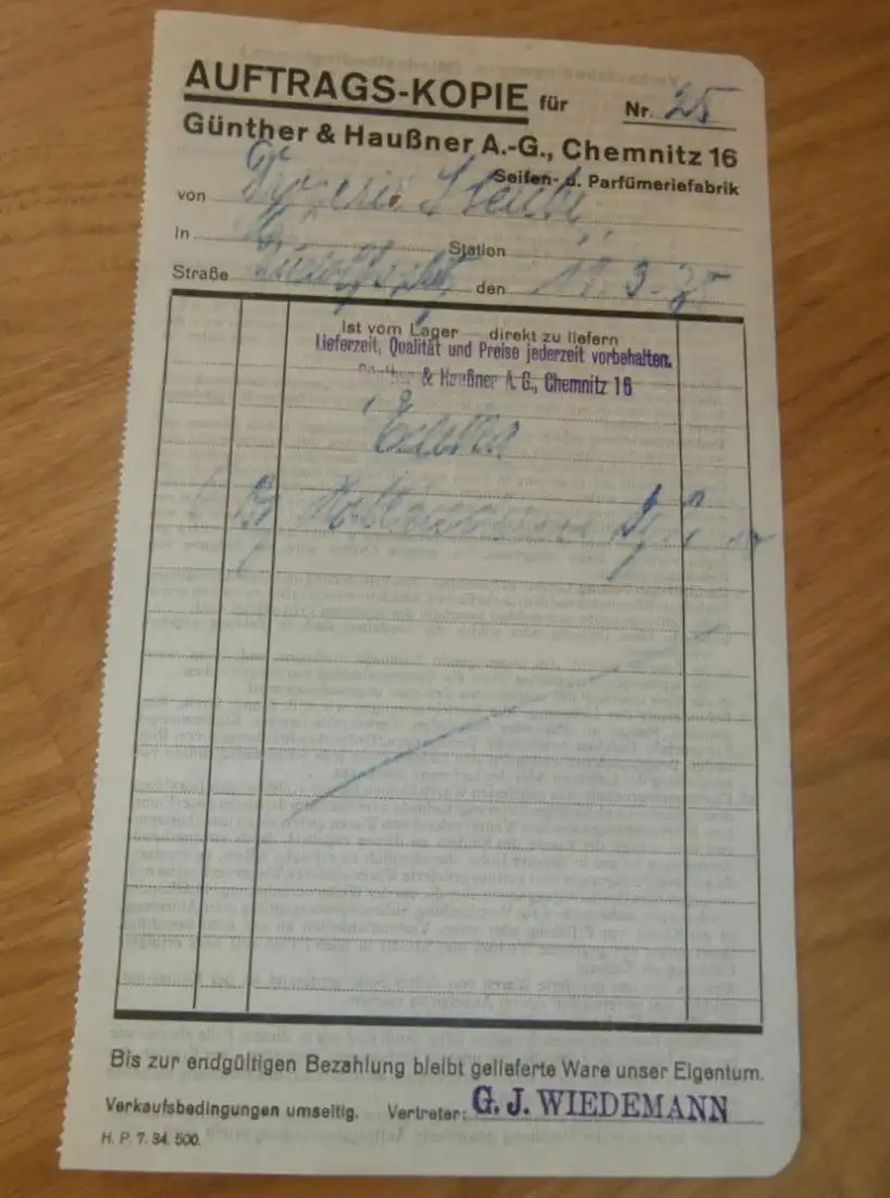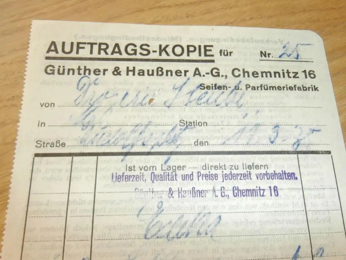 Seifen- und Parfümfabrik - Günther & Haußner in Chemnitz , 1938 , alte Rechnung , altes Dokument !
