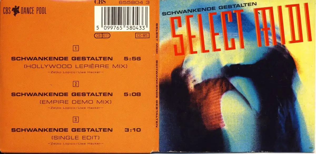 CD Single Select Midi - Schwankende Gestalten, 3" CD, Klappcover; Uwe Hacker, Zustand CD VG+ Hülle M-; Made in Netherlands 1990 CBS 655804 3, Tracks Hollywood LePièrre Mix 5:56, Empire Demo Mix 5:08, Single Edit 3:10