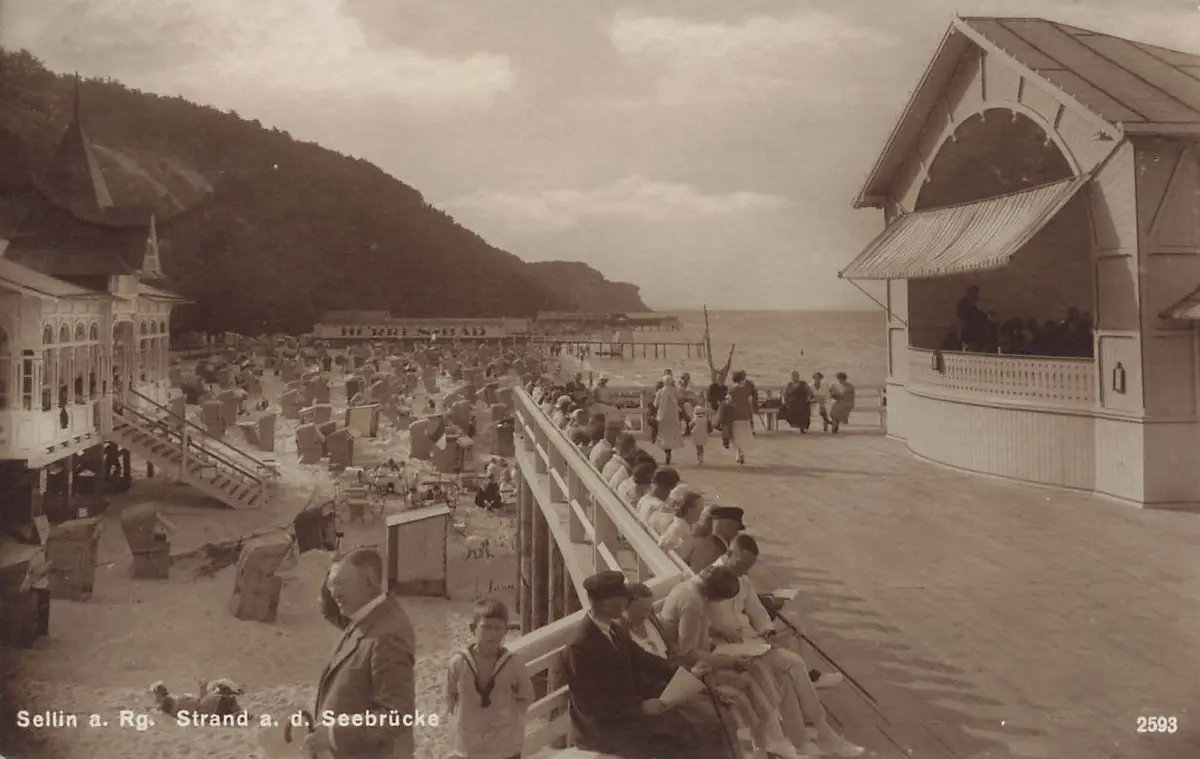 Sellin a. Rg. Strand a. d. Seebrücke Postkarte AK 1926