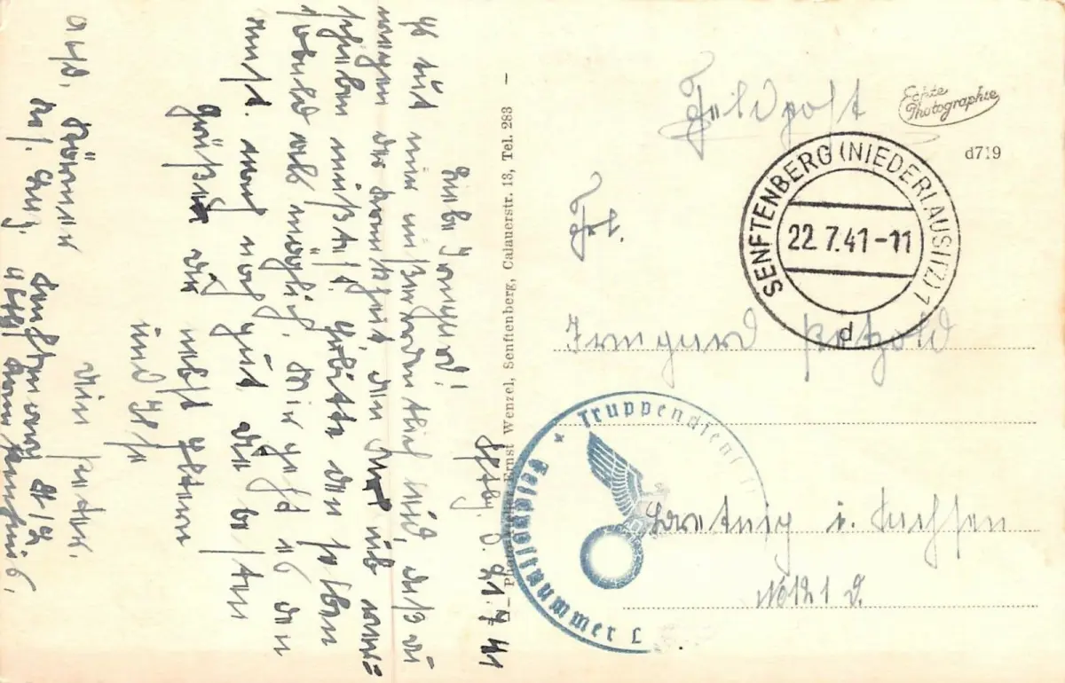 Rückseite: gelaufen 1941 von Senftenberg (Niederlausitz)