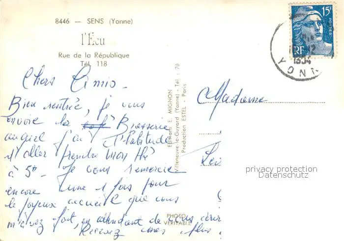Sens_89 Cafe de L’Ecu Interieur postalisch gelaufen 1954 Erhaltung siehe scans [WerneD78] WernPID7
